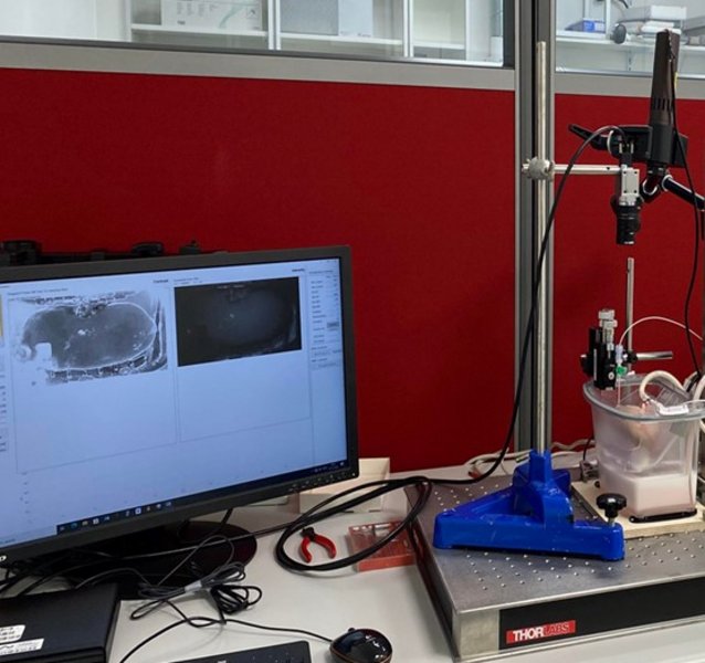 | Laser speckle contrast imaging (LSCI) | System built inhouse | LSCI system optimzed for an imaging area of ~10 cm x 10 cm. The system consists of the following: 785 nm diode laser with 450 mW output power and diffuser; A CMOS camera (Basler a2A2448-75umPRO, 2.74 μm pixel size) with a lens, a long-pass filter and a polarizing filter; Data acquisition software with real-time visualization of the speckle contrast and recording of time series of frames for post-processing to generate blood flow index (BFI) maps. | Inhouse analysis software for generating blood flow index (BFI) maps; BFI maps can be saved in standard formats including TIFF format | online booking |