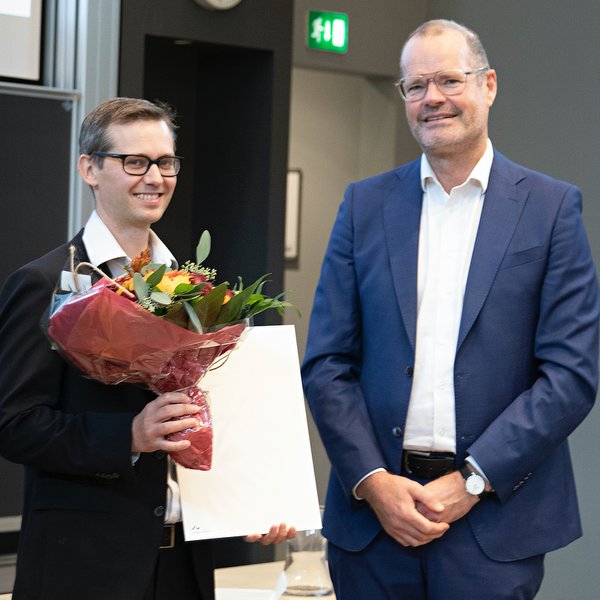Dean of the Faculty of Health, Lars Bo Nielsen, presented the Skou award to Nicolai Juul Birkbak at an event held at Aarhus University on Wednesday afternoon. In his speech, he underlined how this year's award winner is, in many ways, reminiscent of Nobel Prize winner Jens Christian Skou.